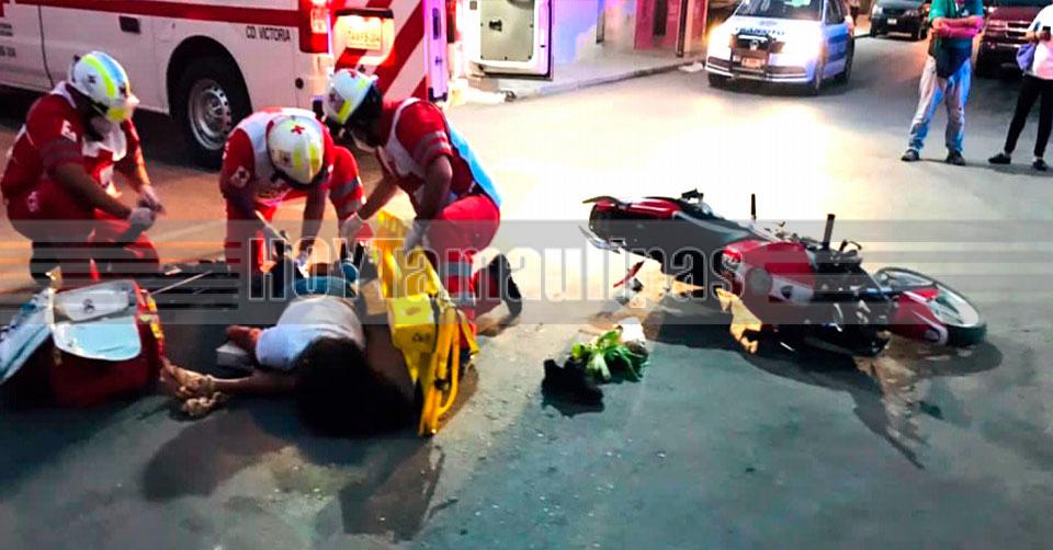 Ciudad Victoria, Tamaulipas. - Una mujer resultó lesionada esta noche luego de estrellarse la moto en la que viajaba con su novio contra una camioneta, en el 7 Hidalgo, zona centro de Victoria.