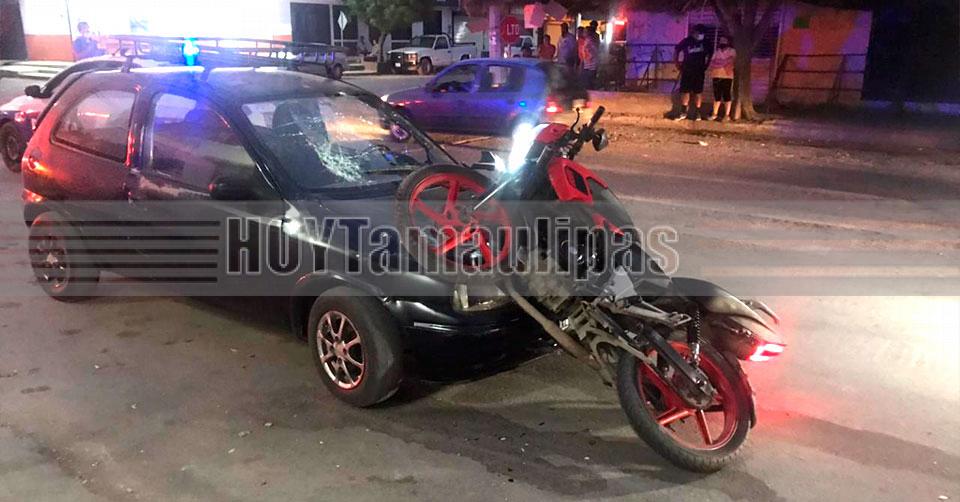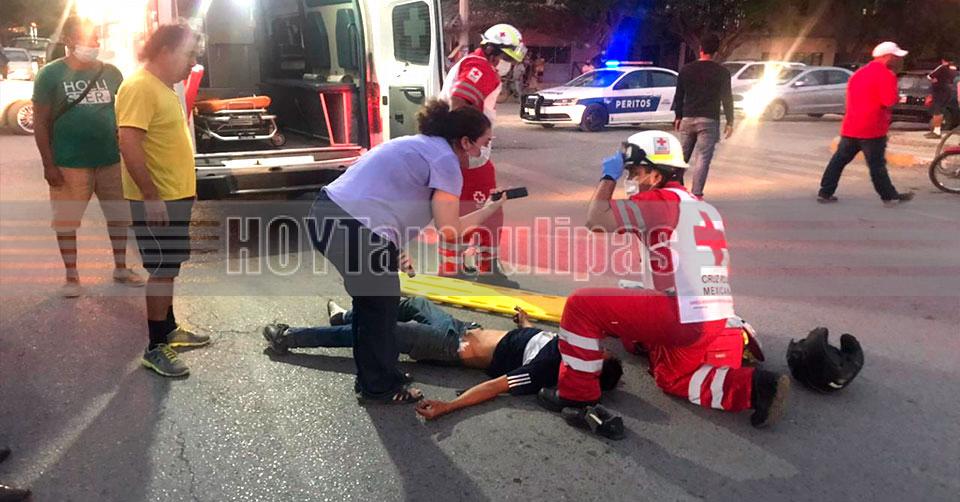 Ciudad Victoria, Tamaulipas. - Un motociclista quedó inconsciente por varios minutos luego de salir volando tras estrellarse contra un vehículo esta tarde, en el 27 Matamoros.