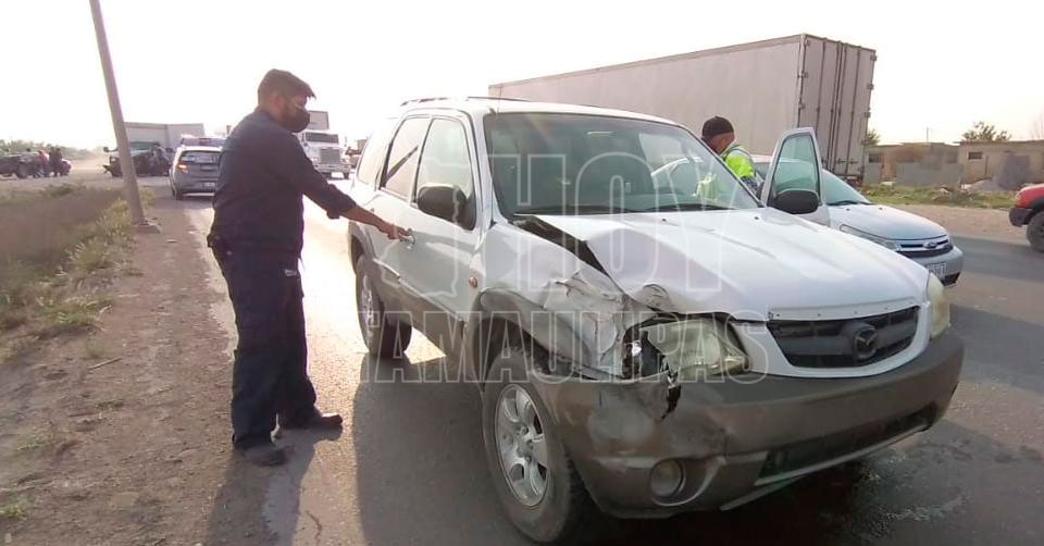 Nuevo Laredo, Tamaulipas. ─ Dos heridos y miles de pesos en daños materiales, fue el saldo de un accidente entre tres vehículos ocurrido sobre el Segundo Anillo Periférico, en Nuevo Laredo, luego de que un conductor cambió repentinamente de carril.