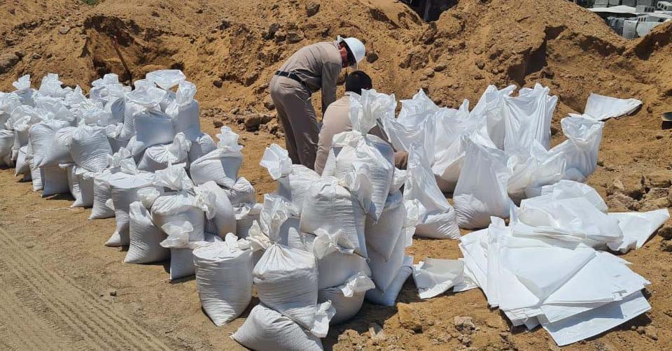 Tampico, Tamaulipas.- Esta tarde la Comisión Municipal de Agua Potable y Alcantarillado (Comapa) de la Zona Conurbada de la Desembocadura del Río Panuco, activó un protocolo de emergencia a fin de llevar a cabo el relleno y traslado de más de mil costales con el objetivo de taponear de manera temporal una enorme fuga de agua que se presentó la tarde de ayer en el dique denominado El Camalote, ubicado en el Ejido Mata la Monteada del Estado de Veracruz.
