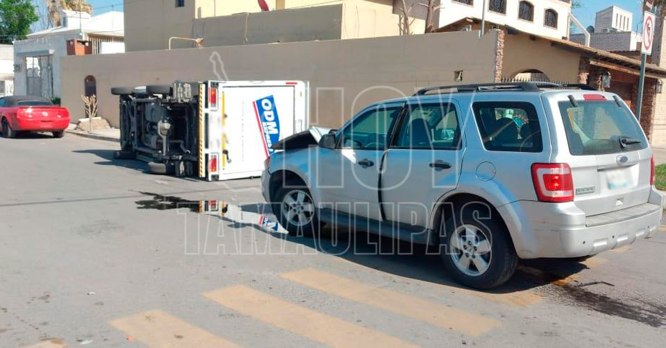 Adulto mayor causa choque con volcadura en Nuevo Laredo