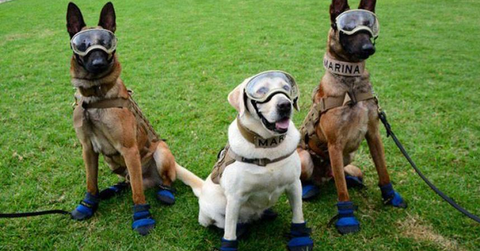 Cada uno de los perros va acompañado por un uniformado de la Marina, para identificar a los sobrevivientes que se encuentran bajo los escombros.
