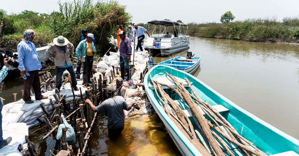 Tampico, Tamaulipas. -Derivado de la rotura de la reparación realizada en el barrote del Estero El Camalote la cual ocasionó el ingreso de miles de litros agua salobre al sistema lagunario Guayalejo-Tamesí, la COMAPA Zona Conurbada dio continuidad al protocolo de emergencia, procediendo a instalar en el sitio del problema más de 500 costales con arcilla, así como tablestacado rústico, dando fin a los trabajos de remediación temporal.
