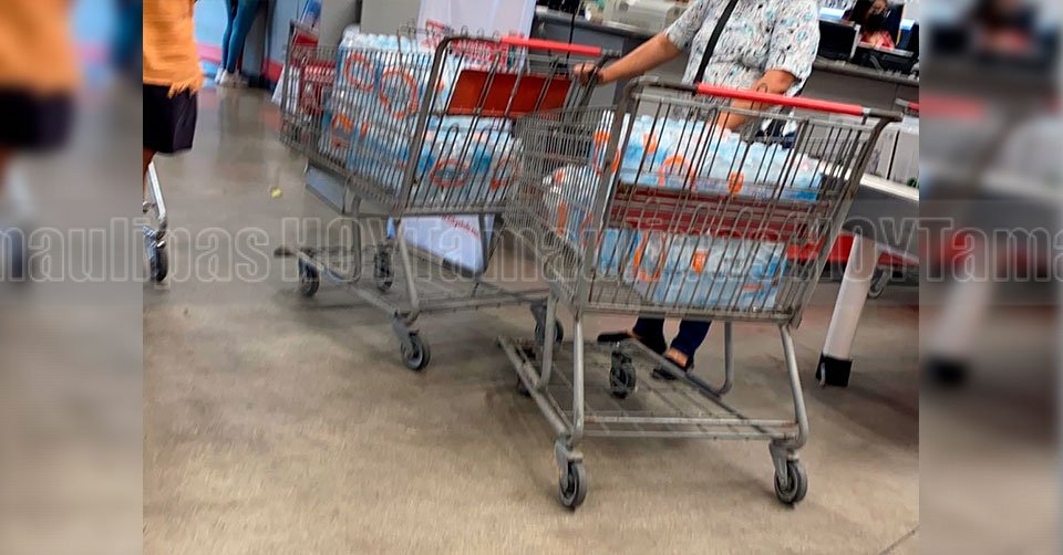 Tampico, Tamaulipas. - La psicosis colectiva por la supuesta escasez de agua purificada, ha generado que ahora la gente se lleve las botellas de agua embotellada de los supermercados en Tampico.