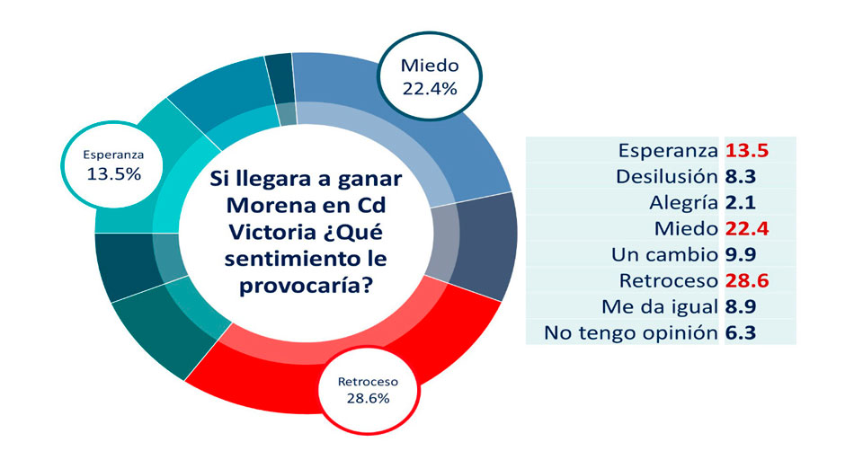 “Aunque es preferible un estudio cualitativo, para conocer el humor social y el sentimiento de los ciudadanos, el colocar esta variable en la encuesta, nos permite ver que, en Ciudad Victoria, los ciudadanos si están preocupados que la falta de resultados y la polarización que provoca Morena llegue a la capital del Estado”.