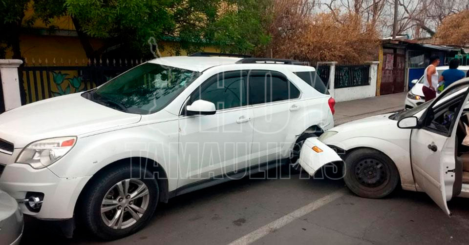 Conductora choca dos vehículos estacionados en Nuevo Laredo