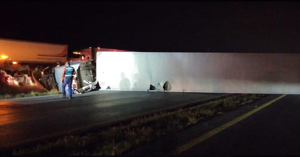 Nuevo Laredo, Tamaulipas.─ Un chofer de tráiler sufrió heridas consideradas graves, al volcar la unidad que conducía en la Carretera Nacional, al sur de Nuevo Laredo.