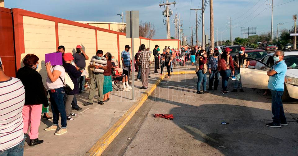 Matamoros, Tamaulipas. - Con un retraso de 20 minutos y largas filas en los módulos de vacunación contra el Covid, esta mañana inició en Matamoros la segunda etapa de la aplicación del biológico Pfizer para las personas de 60 años en adelante.