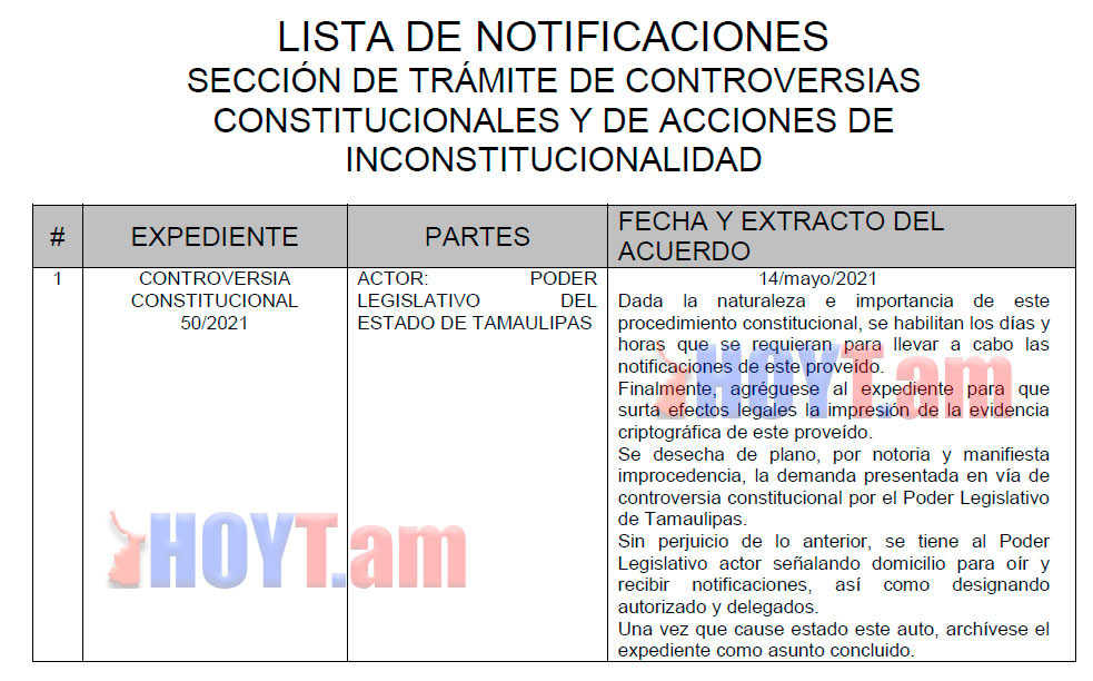 Cabe recordar que el Congreso de Tamaulipas tomó la decisión de interponer la controversia constitucional luego de que en la Cámara de Diputados se aprobó el desafuero de García Cabeza de Vaca el pasado 30 de abril, para que enfrente a la justicia por los delitos que ha sido señalado, entre los que se encuentra el de defraudación fiscal.