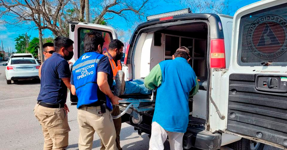 Matamoros, Tamaulipas. - Un hombre de oficio albañil resultó con golpes en varias partes del cuerpo tras caerse del andamio donde trabajaba, a una altura de tres metros, en Matamoros.