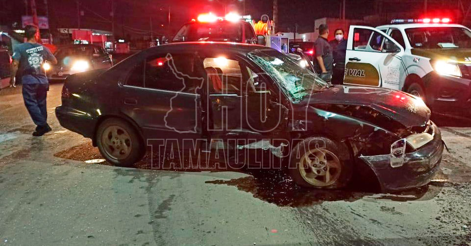Matamoros, Tamaulipas. - La trabajadora de una maquiladora en Matamoros ocasionó un choque, que terminó en volcadura, al incorporarse al carril de la Lauro Villar sin precaución.