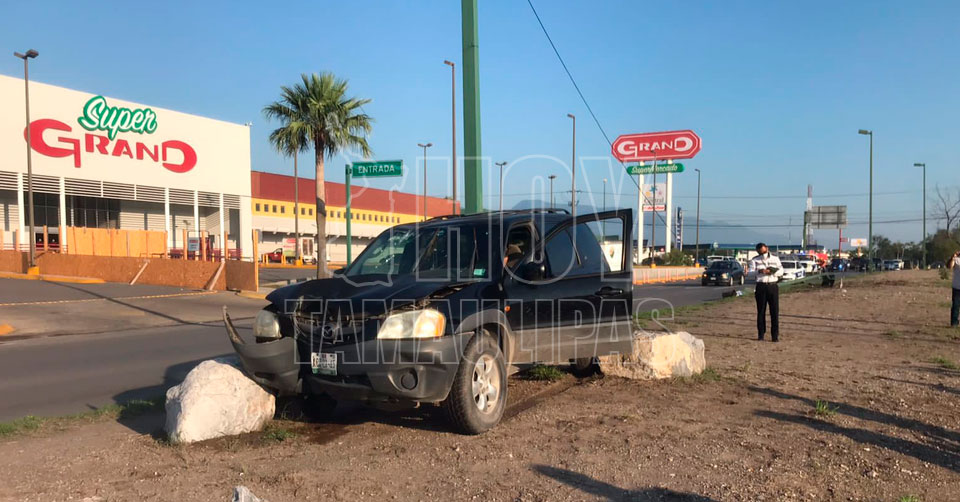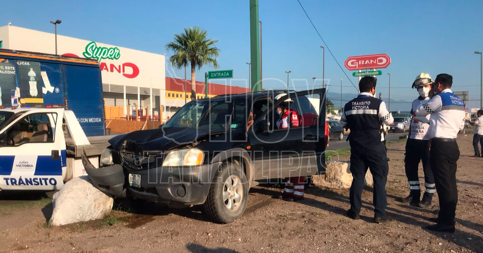 Ciudad Victoria, Tamaulipas. – Un padre de familia y su menor hijo resultaron lesionados esta mañana, luego de que el señor perdió el control al volante presuntamente por un desmayo y derribó una luminaria, deteniendo su marcha en una roca en Ciudad Victoria.