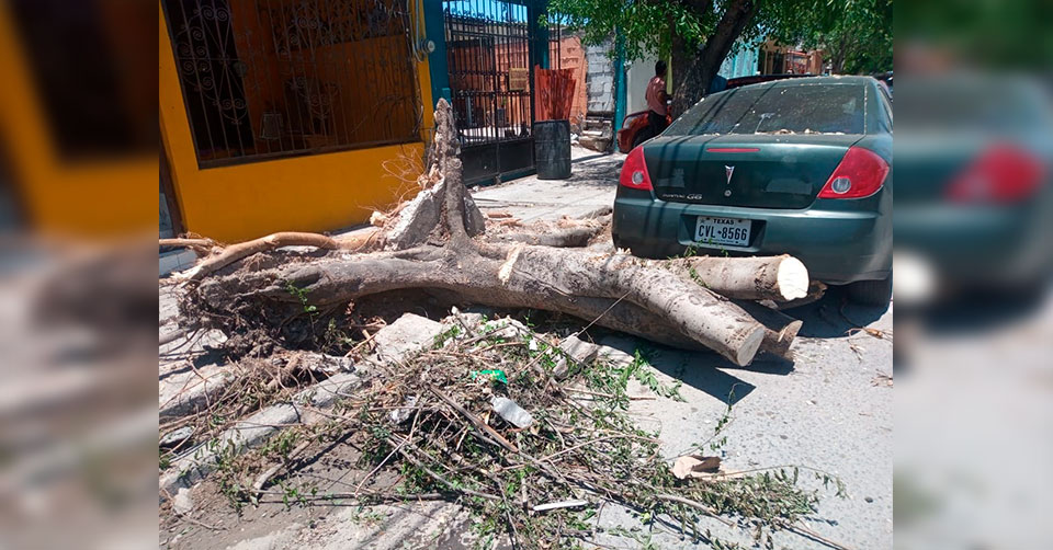 En ese momento, las brigadas de Yahleel empezaron a cortar ramas y trozar el tronco del árbol, para poder retirarlo del auto y abrir el paso a los peatones, así como para agilizar el tránsito vehicular.