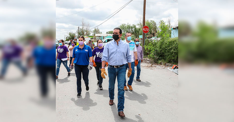 Nuevo Laredo, Tamaulipas. - Dejando a un lado las actividades de campaña y con la firme convicción de solidaridad, el candidato a Diputado local por el Distrito I, Enrique Rivas, acudió a la colonia Buenavista para ayudar a la limpieza de casas y calles después de la tormenta del pasado lunes.
