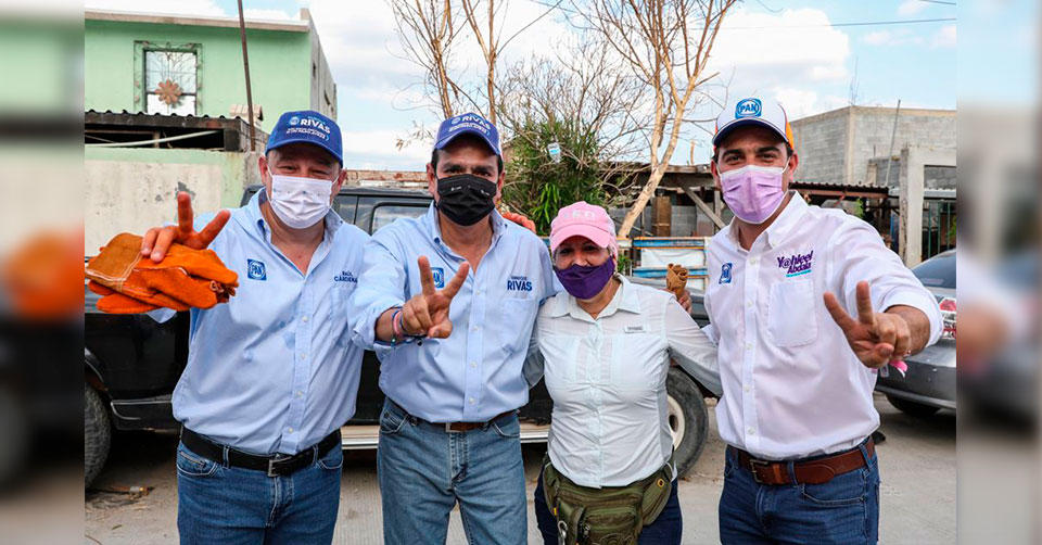 La cuadrilla voluntaria, el candidato Enrique Rivas, su suplente Raúl Cárdenas Thomae y el candidato a la regiduría, Óscar Treviño, realizaron la limpieza de cuadras y viviendas.