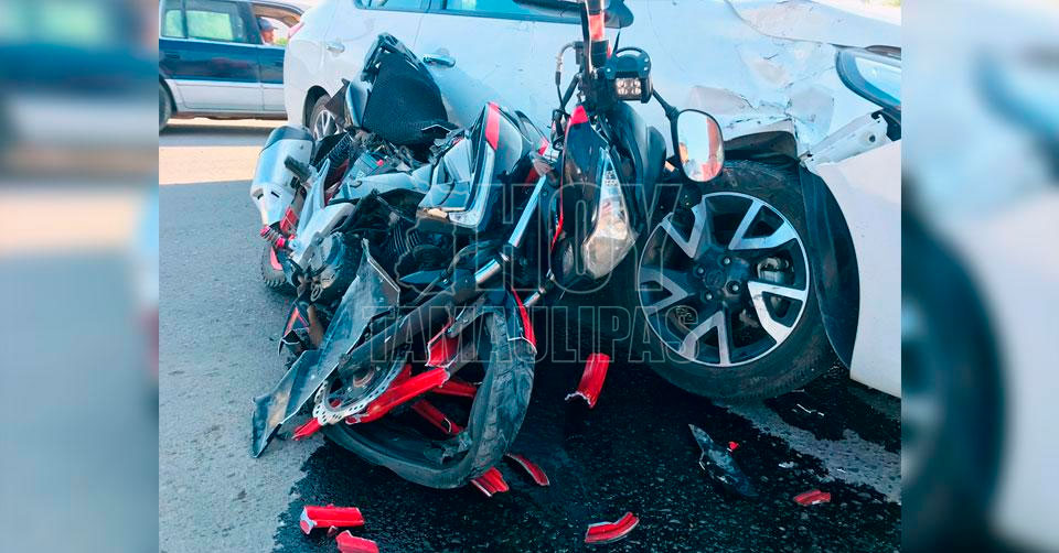 Ciudad Victoria, Tamaulipas. – Un joven motociclista se debate entre la vida y la muerte en la sala de urgencias del Hospital General en Ciudad Victoria, a donde fue llevado por técnicos en urgencias médicas de la Cruz Roja tras sufrir un accidente vial.