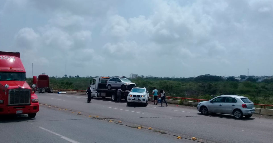 Choque en el distribuidor vial del Edén en Altamira dejó daños materiales