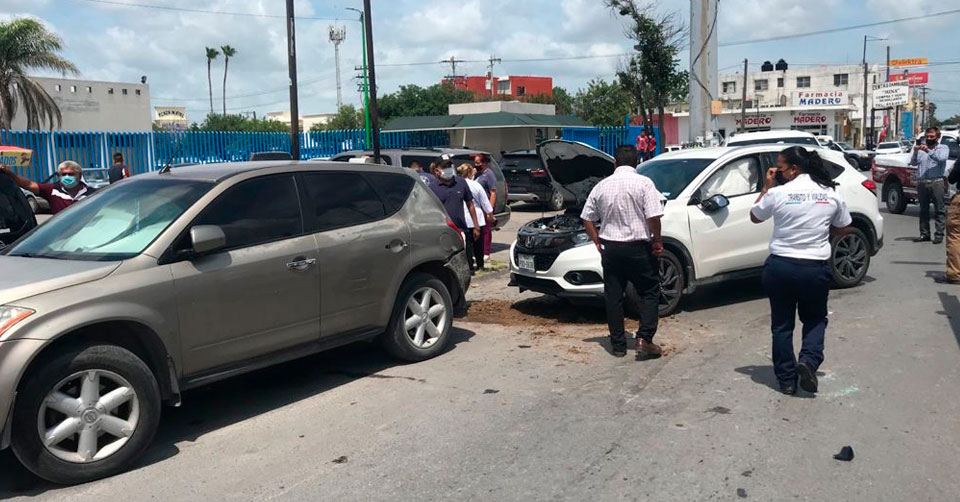 Matamoros, Tamaulipas. - Un fuerte y aparatoso choque con volcadura se suscitó este lunes en la avenida Canales y Durango del municipio de Matamoros.
