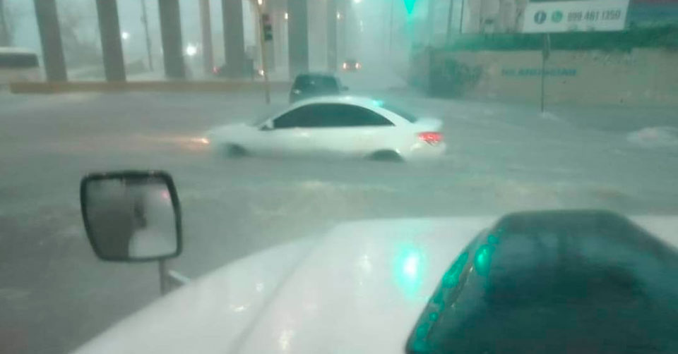 La tormenta inició poco después de las ocho de la mañana y después de casi una hora disminuyó su intensidad dejando severos encharcamientos en las zonas bajas de la ciudad y algunos sectores sin el servicio de energía eléctrica.