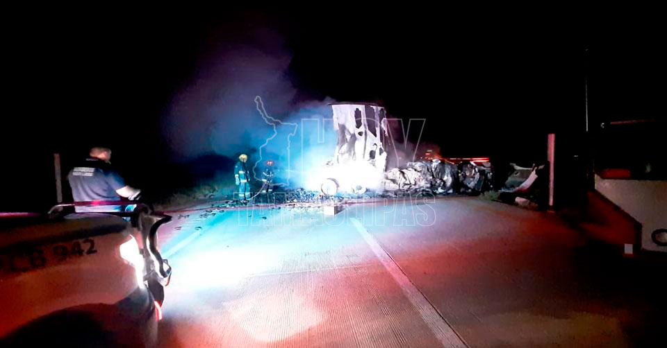 Nuevo Laredo, Tamaulipas. ─ Un operador de tráiler sufrió quemaduras en el 90 por ciento de su cuerpo, luego de que la unidad de carga que manejaba se incendió tras estrellarse por alcance contra la caja de otro tractor en la Carretera Nacional, cerca de Nuevo Laredo.