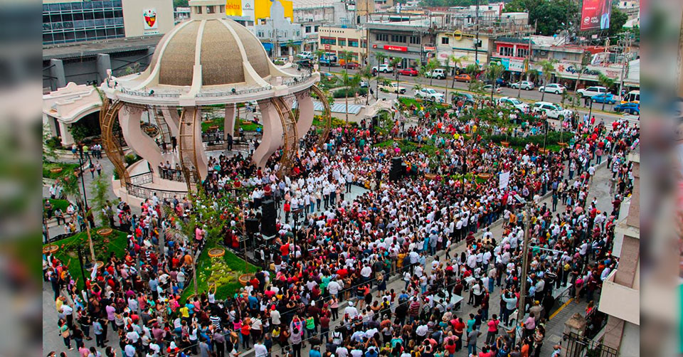 Para celebrar el histórico triunfo, Oseguera Kernion acompañado de su esposa Ana Cristina e hijos, se reunió este lunes con cientos de maderenses ante el monumental quiosco de la plaza Isauro Alfaro Otero.