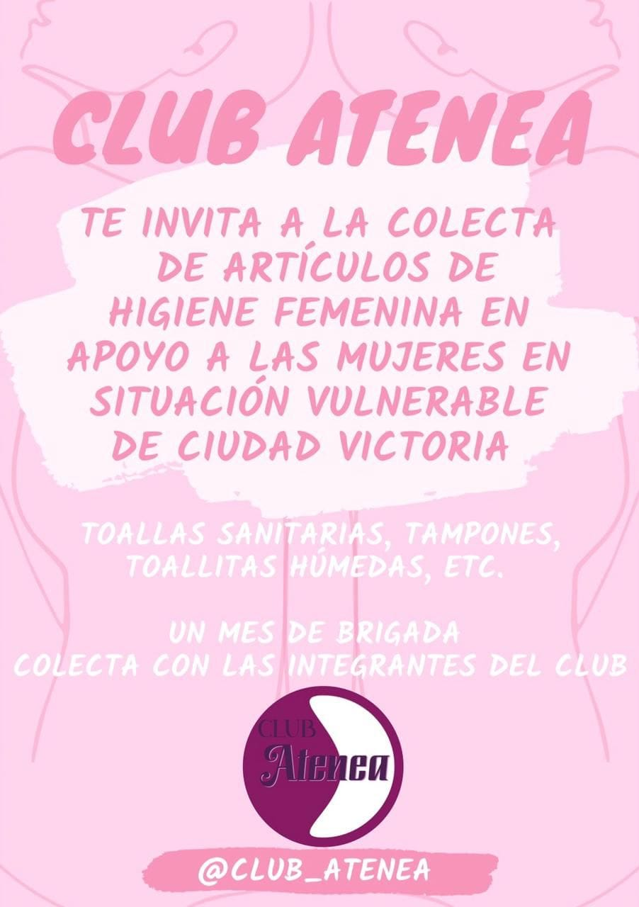 Ciudad Victoria, Tamaulipas.- Integrantes del Club Atenea en Ciudad Victoria invitan a la sociedad en general a participar en la "Brigada para la recolección de artículos de higiene femenina", esto con la finalidad de ayudar a las mujeres de la capital del Estado en situación vulnerable.