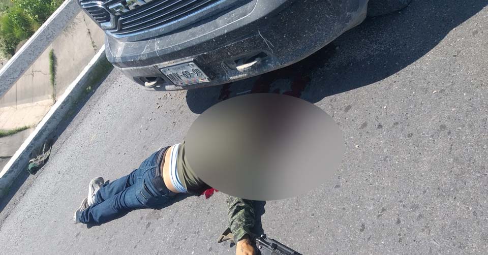 En el enfrentamiento tres presuntos delincuentes que viajaban a bordo de una camioneta Ram blanca fueron abatidos, y sus cuerpos quedaron juntos a las armas de grueso calibre que portaban.