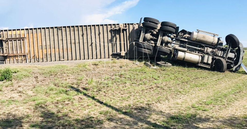 Esto provocó que perdiera el control al volante y quedara volcado, quedando la caja obstruyendo un carril a la circulación.