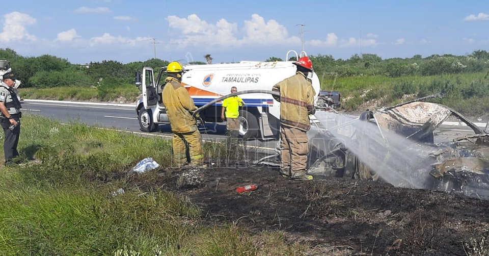 Un testigo del accidente dijo que repentinamente la camioneta frenó y observó cómo se proyectó contra el camellón divisor de carriles, donde dio un vuelco y posteriormente comenzó a incendiarse.