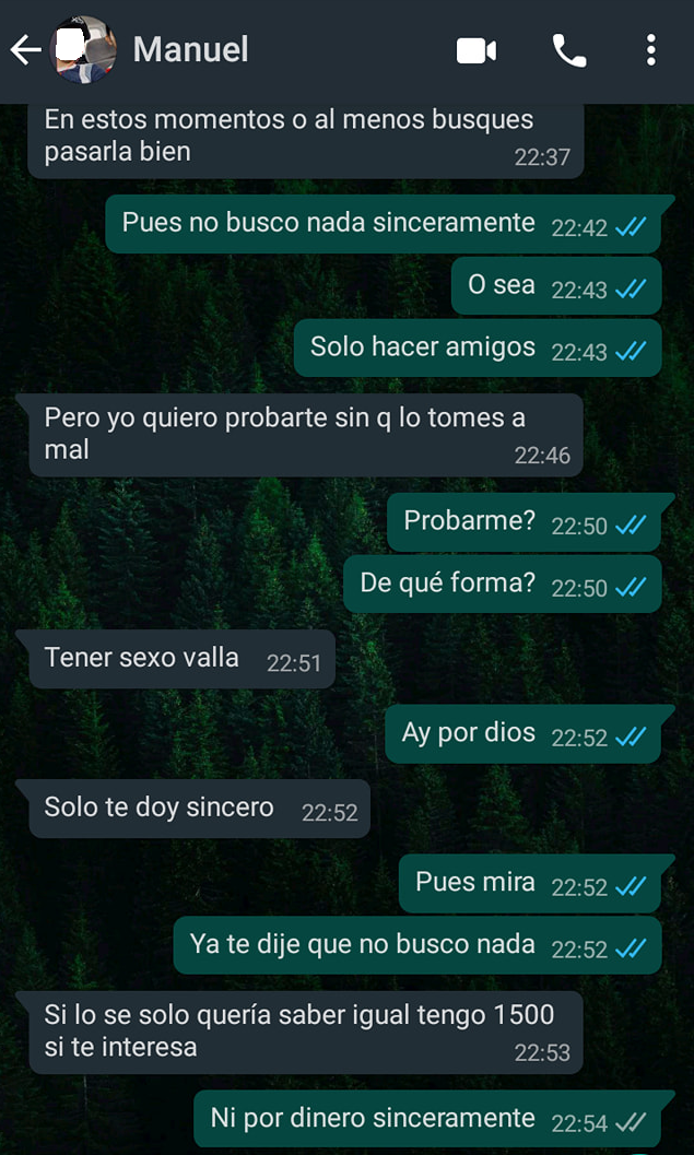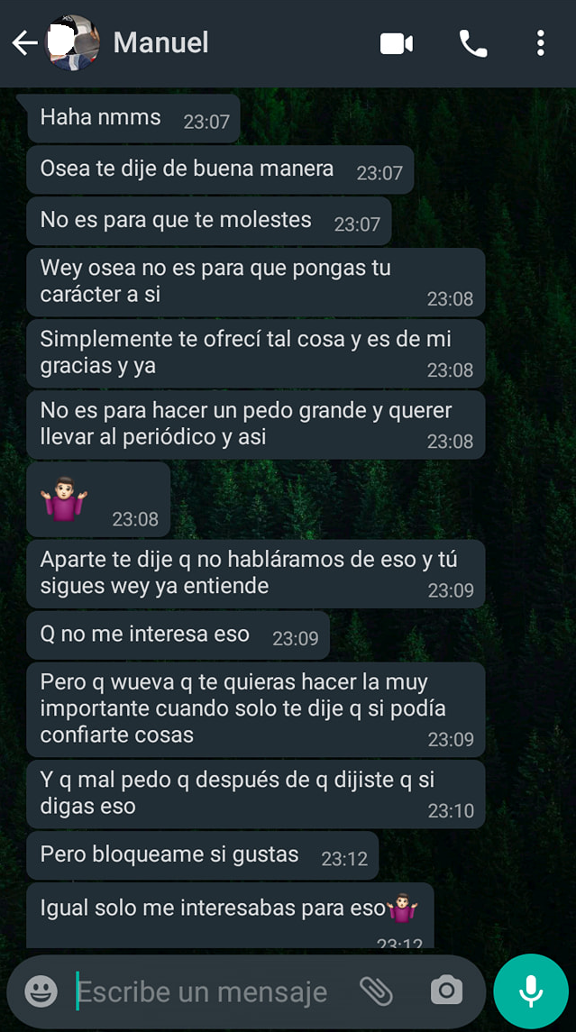 “Chicas, quería advertirles de un chico que me contactó hace unas horas, estaba literalmente acosándome pidiéndome sexo a cambio de dinero, claramente le dije que no y el tipo siguió insistiendo, le mandé un audio diciéndole que me dejara de molestar”, escribió Mariana en el grupo de Facebook.
