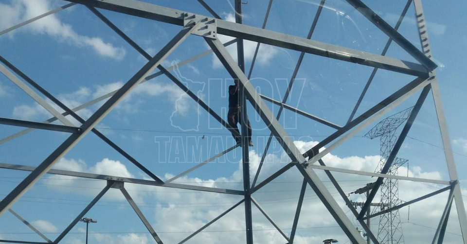 Matamoros, Tamaulipas.- Un hombre originario del El Higo, Veracruz, causó la movilización de las autoridades y es que se trepó a una de las torres de la Comisión Federal de Electricidad (CFE).