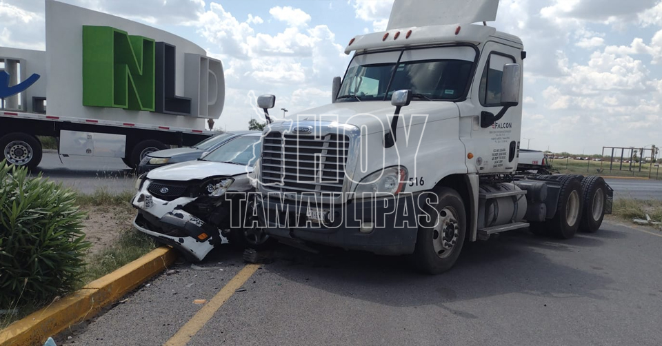 Nuevo Laredo, Tamaulipas. ─ Daños materiales muy cuantiosos dejó como saldo un accidente entre un tractocamión y un automóvil, luego de que el conductor del último cambió de manera brusca de carril invadiendo el camino del trailero.