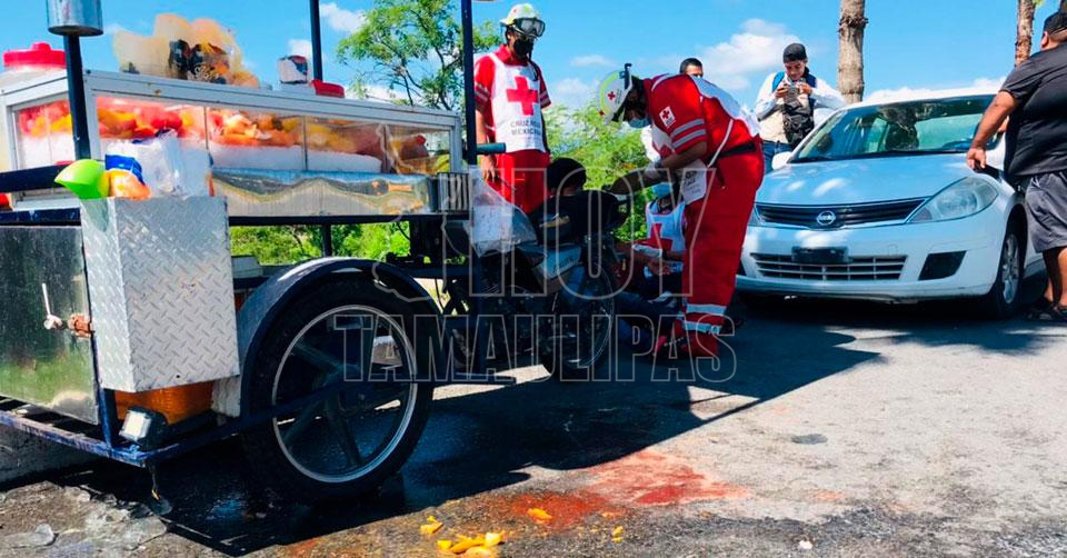 Ciudad Victoria, Tamaulipas. – Un choque entre un peatón y un vendedor de aguas y frutas a bordo de un triciclo, dejó como saldo un lesionado y pérdidas materiales en la prolongación del Boulevard Praxedis Balboa en Ciudad Victoria.