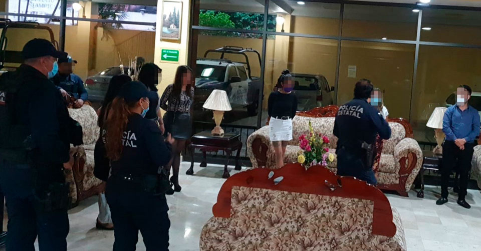 Tampico, Tamaulipas. – Personal de la Policía Estatal detuvo en un hotel del centro de Tampico a 12 personas, entre ellas cinco mujeres, señalados por probable falsificación, uso de documentos privados, usurpación de identidad y robo.