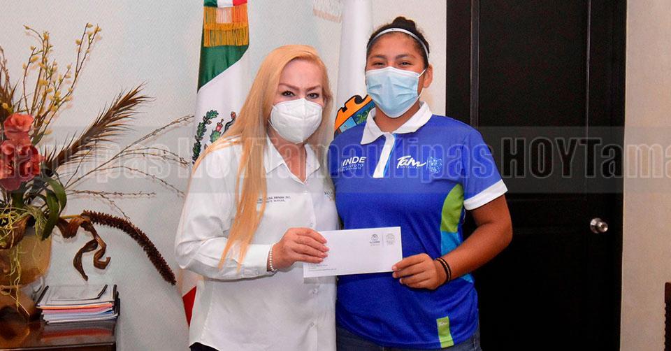 La jefa edilicia felicitó a la destacada softbolista altamirense y señaló que Altamira es tierra de campeones y cuna de grandes deportistas, refrendando su compromiso con el deporte y los deportistas locales;