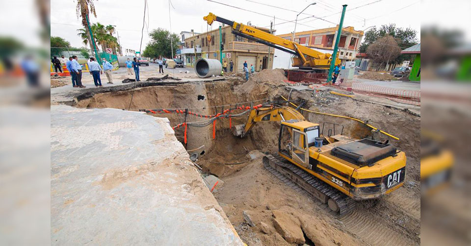 Otro de los puntos que visitó Sanmiguel Cantú, fue el socavón que se formó en González y América, donde constató el avance de la obra.