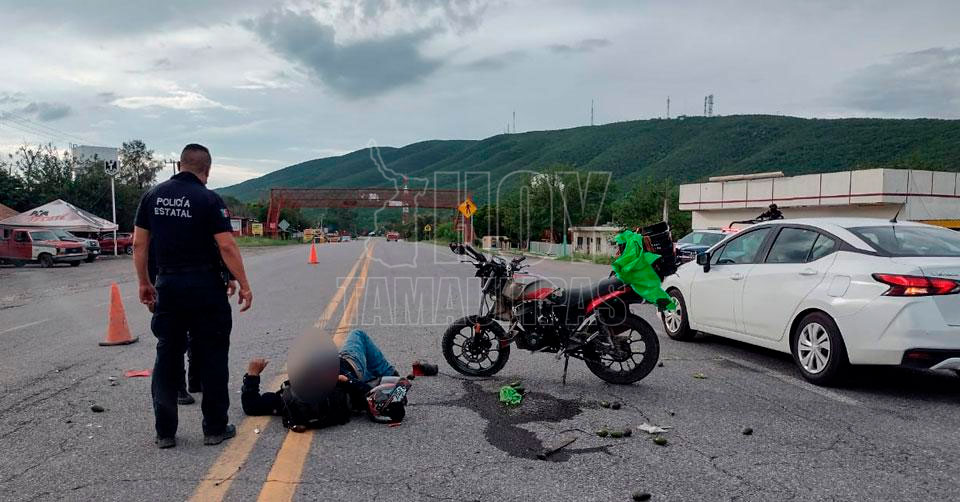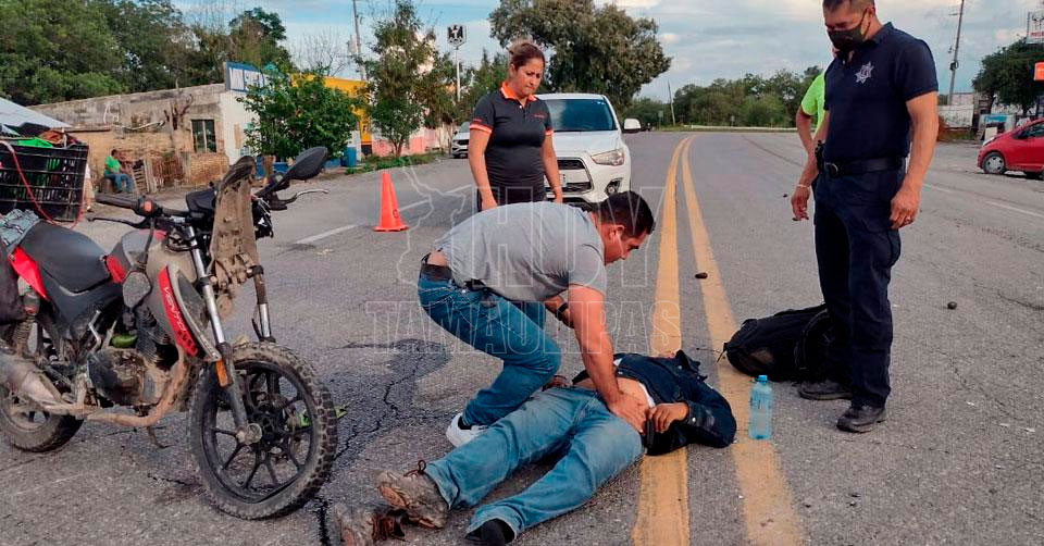 El motociclista recibió atención pre hospitalaria por un médico particular de nombre Erik Flores del municipio de Villagrán, el cual lo valoró y sugirió que fuera llevado a recibir atención médica al municipio de Hidalgo, por lo que fue trasladado por elementos de Protección Civil.