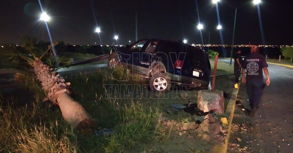 Al llegar a la altura del Bulevar De Las Gemas, frente al Centro Cultural, perdió el control y se estrelló contra el arbotante y una palmera, que fueron derribados.