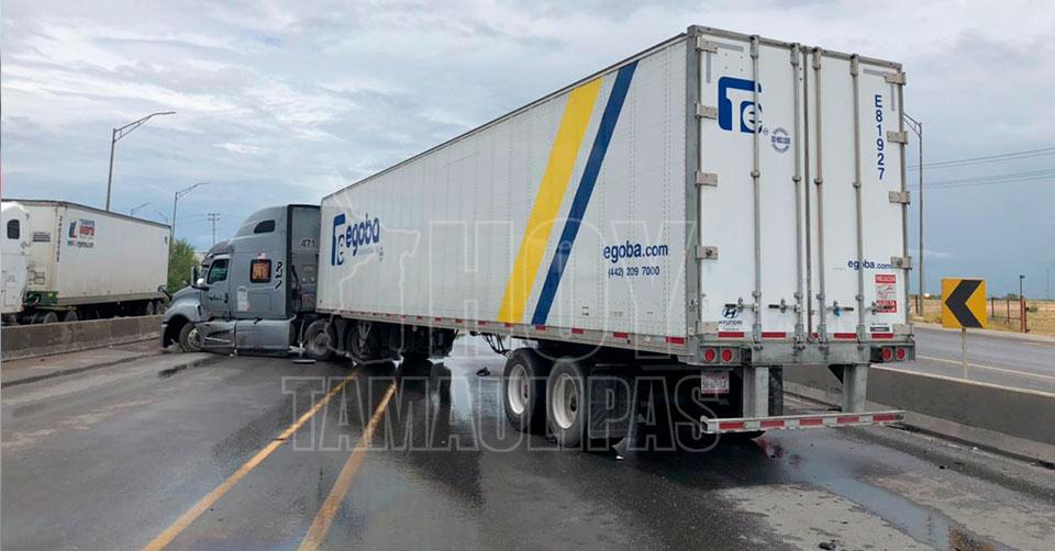 Resulta herido al chocar su auto contra tráiler en Nuevo Laredo