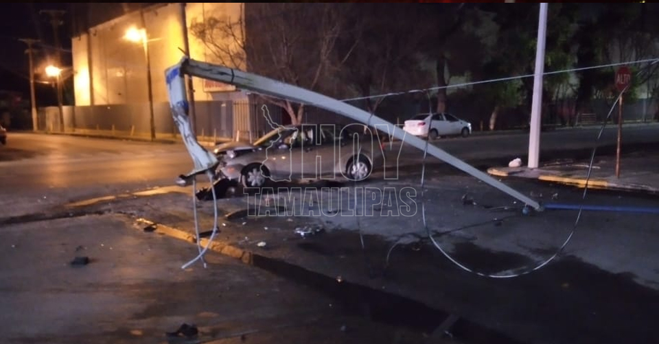Nuevo Laredo, Tamaulipas.─ Luego de chocar contra un poste de luz que derribó en la Avenida Guerrero, la principal de Nuevo Laredo, una persona abandonó su automóvil para no pagar los daños que provocó al Municipio.