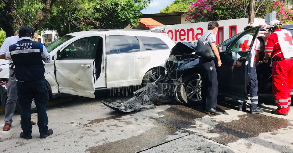 Se pasa alto y provoca choque en centro de Victoria; hay una mujer lesionada