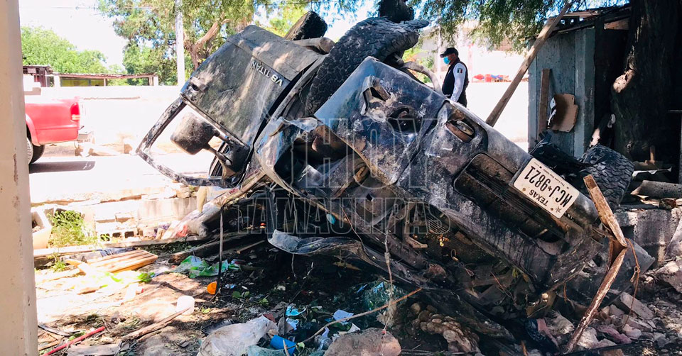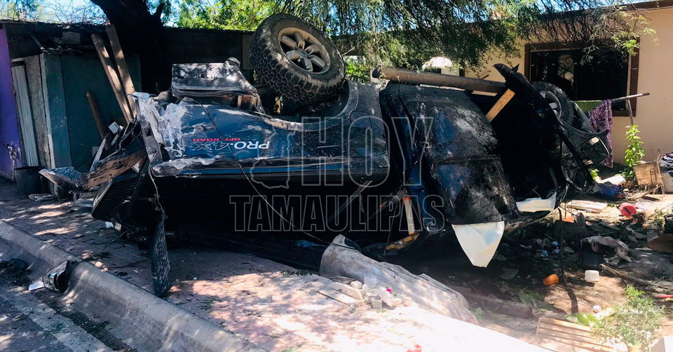 Padilla, Tamaulipas. - Una conductora resultó gravemente lesionada esta tarde tras volcar la camioneta en la que viajaba y terminar al interior de una vivienda en la carretera nacional Victoria-Monterrey, a la altura del Poblado El Barretal en Padilla, Tamaulipas.