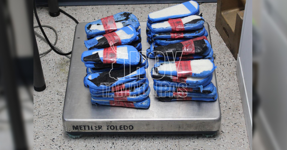 El tractor de la marca International 2020 y la caja fueron remitidos para una inspección canina y del sistema de imágenes, lo que resultó en el descubrimiento de paquetes que contenían 8.95 kilogramos de supuesta metanfetamina, 14.8 kilos de presunta cocaína y 10.37 kilos de presunto fentanilo dentro del envío.