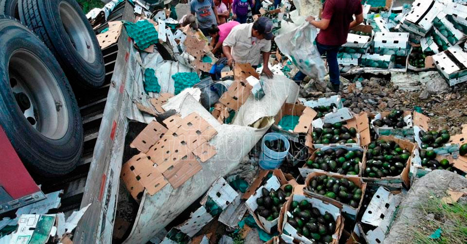 Vuelca tráiler cargado con aguacates en la Rumbo Nuevo; dos lesionados