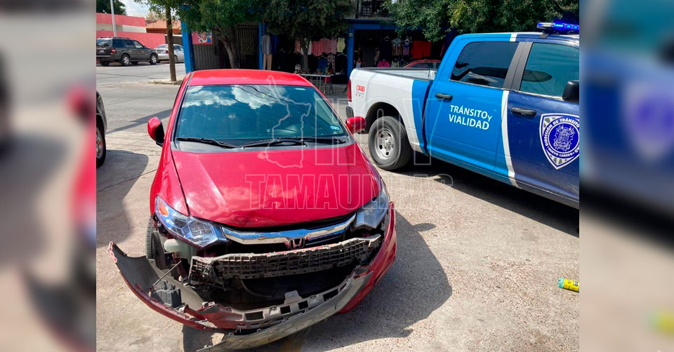 Nuevo Laredo, Tamaulipas. ─ Daños materiales considerables dejó como saldo un accidente vial ocurrido en un crucero de la colonia Guerrero de Nuevo Laredo, causado por una mujer que invadió la vía de preferencia, chocando su auto contra la camioneta de otra dama.