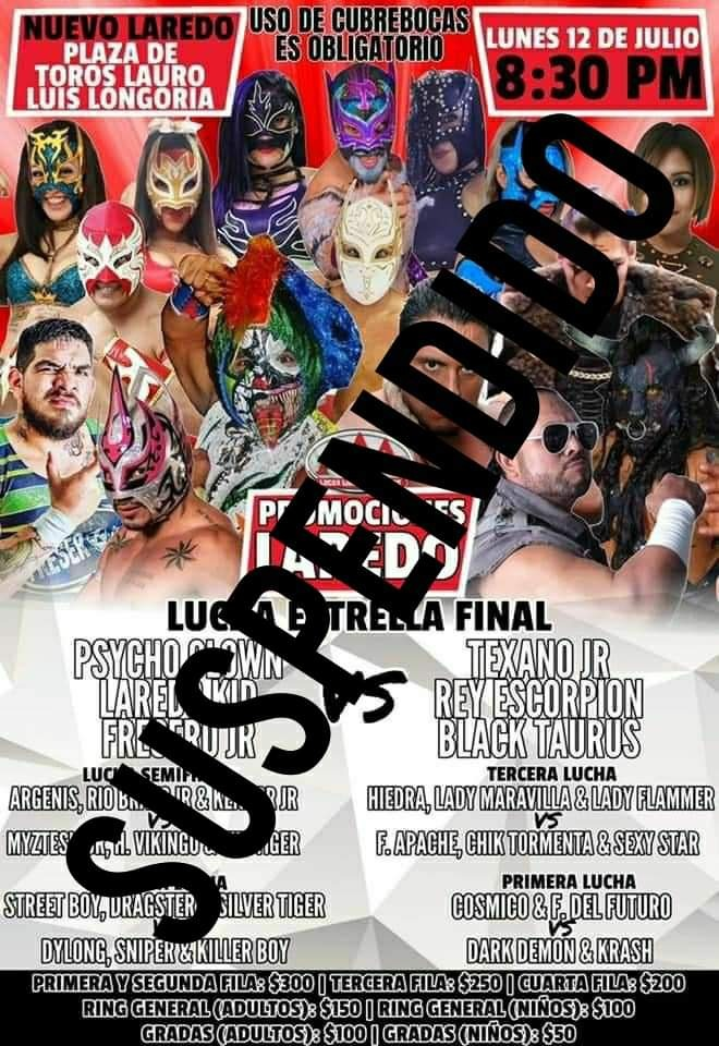 Nuevo Laredo, Tamaulipas. - La empresa “Promociones Laredo” anunció el reembolso de los boletos de la función de lucha libre cancelada el 12 de junio, en la Plaza de Toros “Lauro Luis Longoria” de Nuevo Laredo.