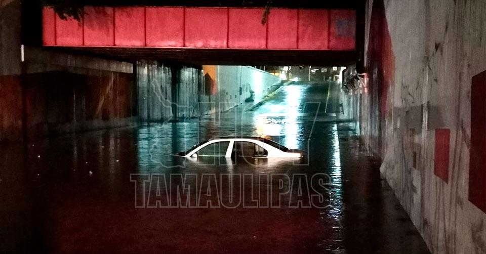 Mientras que equipo de rescate de la Cruz Roja rescató a un conductor que quedó atrapado en el paso a desnivel.