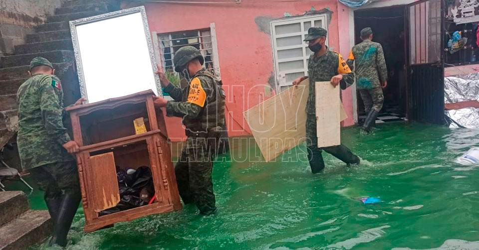 Elementos de la Sedena se presentaron en estas colonias para sacar de sus casas a las personas que sufrieron inundaciones, así como parte de sus enseres domésticos, incluso auxiliaron para sacar a personas enfermas para trasladarlos a un lugar seguro.