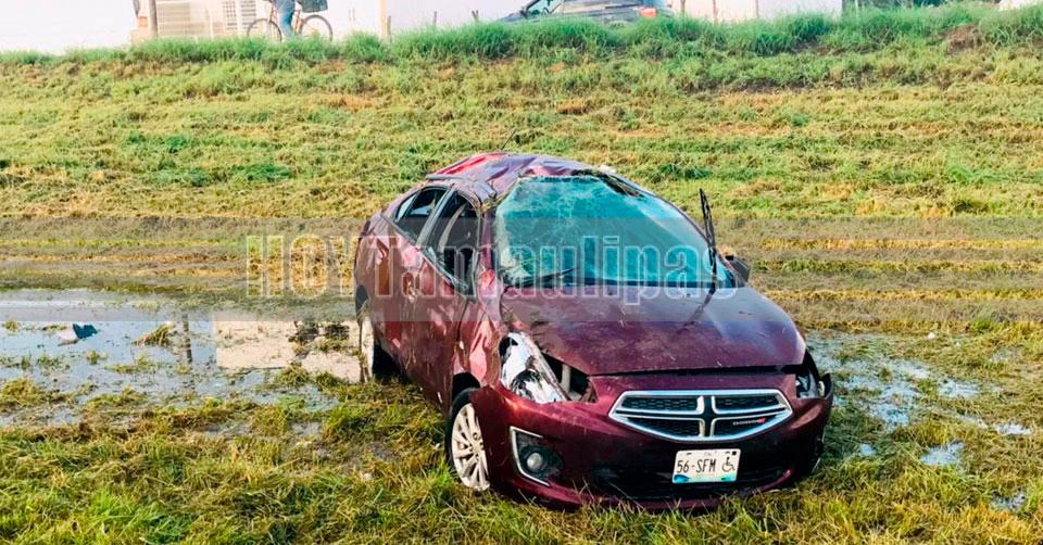 Ciudad Victoria, Tamaulipas. - Por presuntamente sufrir un desmayo, un conductor terminó hospitalizado después de volcar su automóvil cuando circulaba por el libramiento Naciones Unidas en Ciudad Victoria.