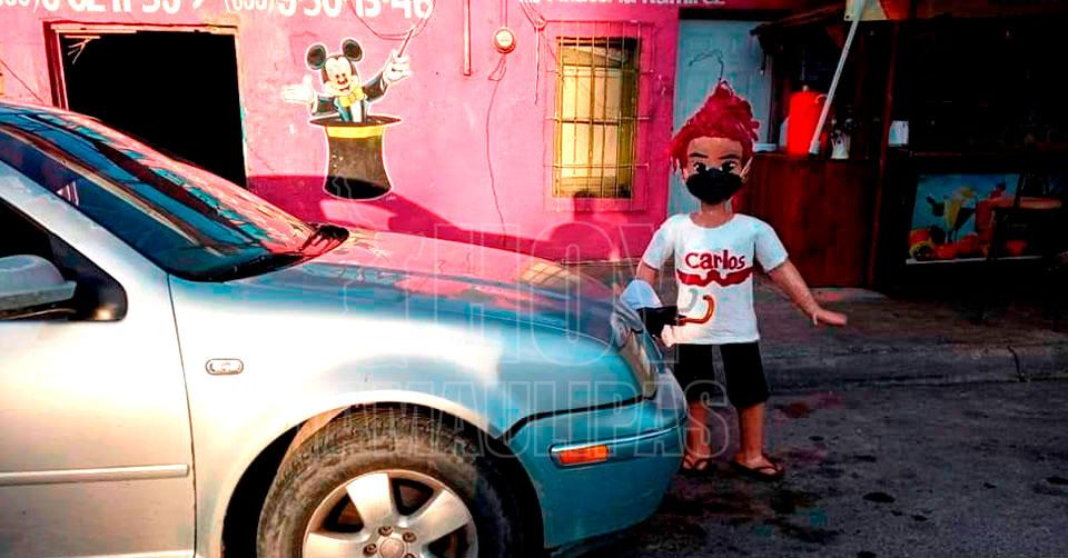 Reynosa, Tamaulipas. - Para la Piñatería Ramírez no pasó desapercibida la aparición de #ladychoques en Reynosa y ya la inmortalizaron en una piñata.